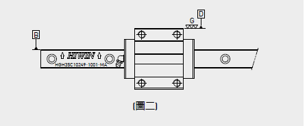 3. 確認安裝基準面:導軌基準面為HIWIN字樣旁箭頭所指的側邊平面(B);而滑塊基準面則為經過研磨的光滑表面(D)。(如圖二)