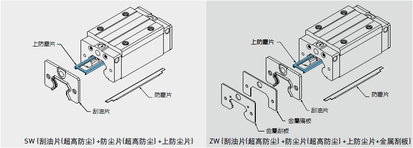 加倍刮屑效果,即使在重切削加工環(huán)境中,異物完全被排除于滑塊外。