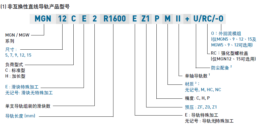 2. MGN及MGW規(guī)格9,12,15可選用防塵片。