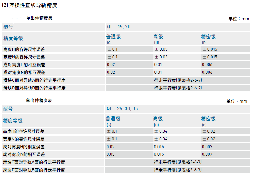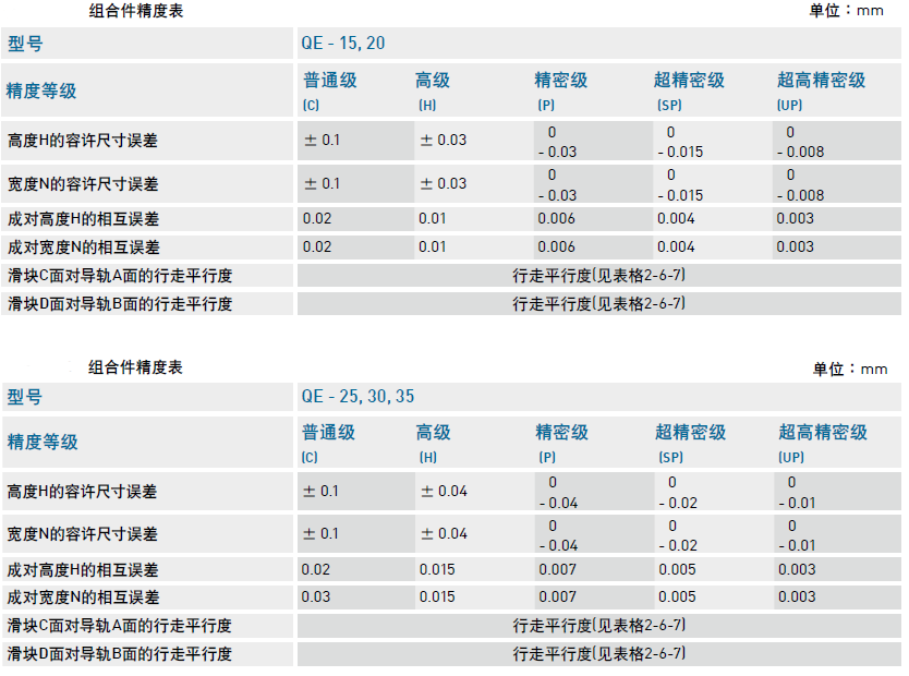 QE系列直線導(dǎo)軌的精度,分為普通、高、精密、超精密、超高精密級共五級,客戶可依設(shè)備精度需求選用精度。