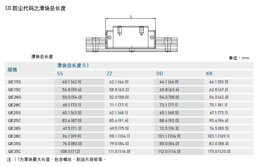 直線導軌QE系列防塵配備說明及防塵代碼