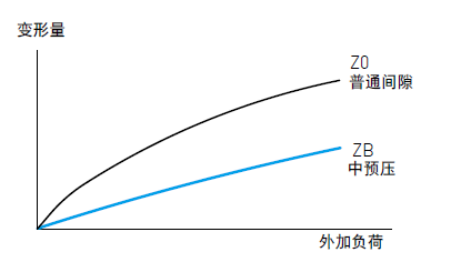 預(yù)壓力是預(yù)先給與鋼珠負(fù)荷力,亦即加大鋼珠直徑,利用鋼珠與珠道之間負(fù)向間隙給與預(yù)壓,此舉能提高直線導(dǎo)軌的剛性及消除間隙;以下圖來(lái)解釋,提高預(yù)壓力可增加直線導(dǎo)軌剛性。但小規(guī)格建議選用輕預(yù)壓以下預(yù)壓,以避免因預(yù)壓選用過(guò)重降低其使用壽命。