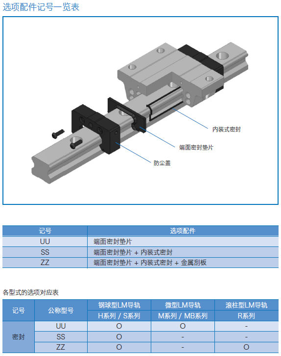 滑塊的兩端和底面裝有端面密封墊片、側面密封墊片及內部密封墊片,防止異物侵入滑塊內部。