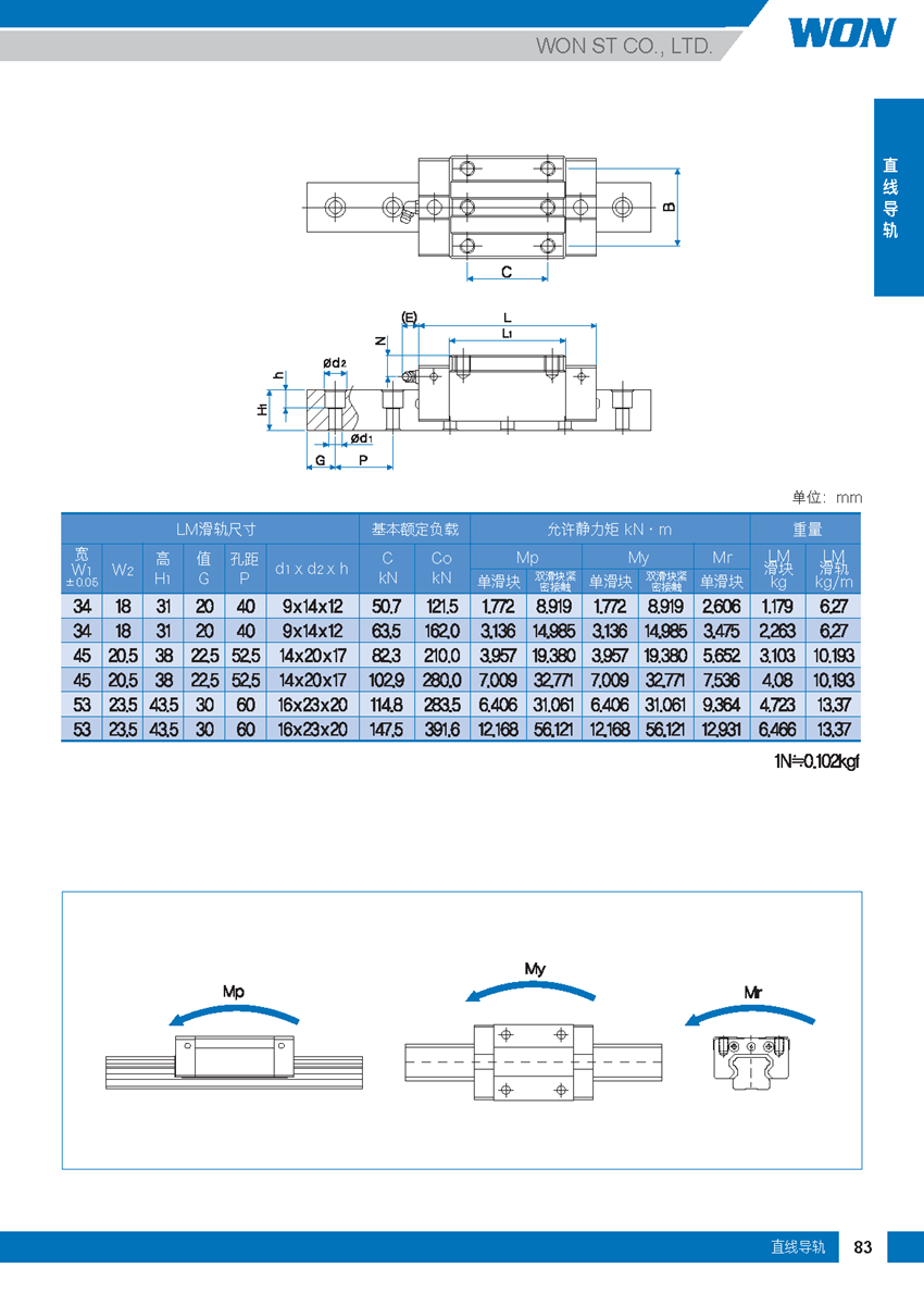 WON直線導軌R系列-重負載滾柱型